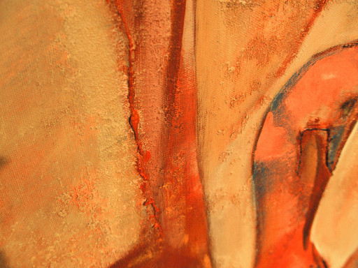 Ze neemt hiervoor een doek, bepaalt de kleur en gaat aan het werk zonder vooropgezet plan. De kleur die ze gebruikt is de kleur die haar op dat moment het meest aanspreekt. In eerste instantie gaat ze intuitief te werk. Vervolgens neemt ze afstand, hoe nu verder, wat zie ik? wat zegt het doek me? Keer op keer, laag over laag verandert er een en ander. Het is een samenspel tussen intuitie en verstand. Uiteindelijk komt er een moment, waarop ze denkt; alles wat ik nu nog toevoeg doet afbreuk aan het geheel, stoppen dus. Het resultaat is voor haarzelf en de toeschouwer vaak een verrassing.